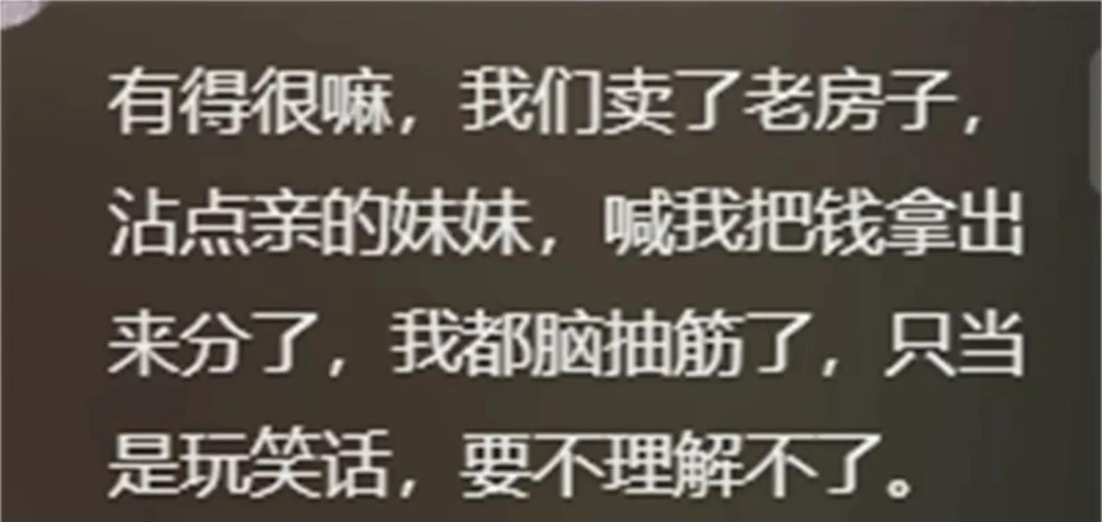 11年的时候,我表姐突然在QQ上说我要当富二代了,我都一脸懵,回去问我你们啥意思?他们说我家的果园要卖出去,可能值100多万,但是那个时候我弟还小学,我爸妈拿着钱也是准备重新换个果园。我姑父(表姐的爸)跟其他人说,我家卖果园的钱,至少应该分给他一半,我爸妈当时开始弄果园,这些亲戚全是说风凉话的,钱也不想借,看着赚钱了还想来分钱
